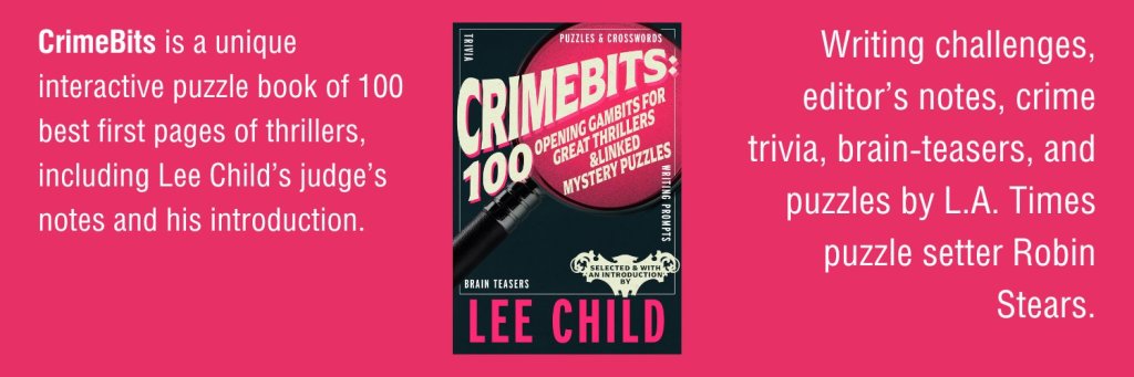 CrimeBits is a unique interactive puzzle book of best first pages of thrillers, including Lee Child’s judge’s notes, and his introduction. Writing challenges, crime trivia, brain-teasers, and editor’s notes will be included. The puzzles will be created by L.A Times puzzle setter Robin Stears.